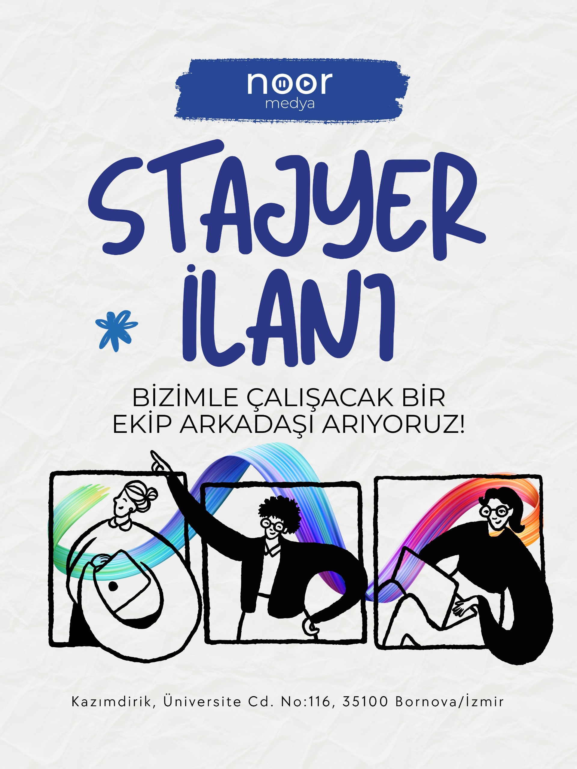 Teorikte öğrendiklerini pratiğe dökmeye, yaratıcı fikirlerini gerçeğe dönüştürmeye hazır mısın? Noor Medya ekibi olarak, dijital dünyayı bizimle keşfedecek, heyecanımıza ortak olacak Stajyer arkadaşlarımızı arıyoruz!